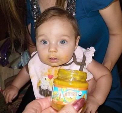 I will add that on Tuesday, August 9 Macy tried squash and LOVED it , she devoured the entire jar! She has since tried green beans, sweet potatoes, carrots, bananas, and prunes. She is not crazy about green veggies, orange is definitely her fave!