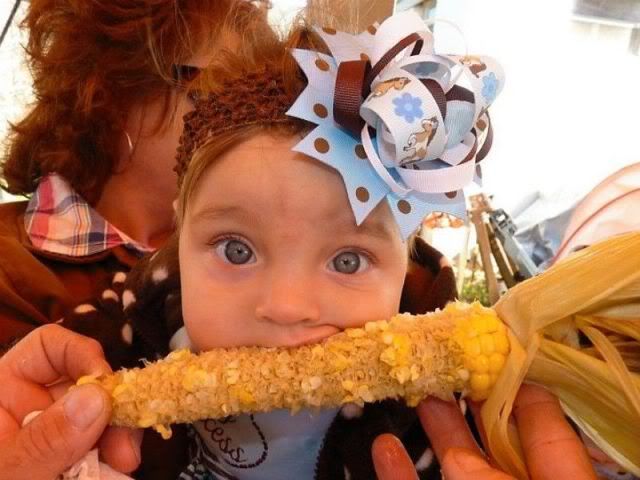 First we got something to eat. Macy enjoyed some of her Papa's corn