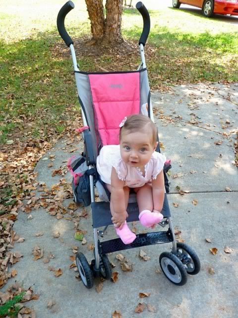 Saturday, Oct. 15th , I let her try yobaby banana yogurt for the first time.. She looooved it. Her favorite thing for breakfast right now is cereal with mashed up banana mixed in. She will eat 2 bowls sometimes and almost the whole banana.
