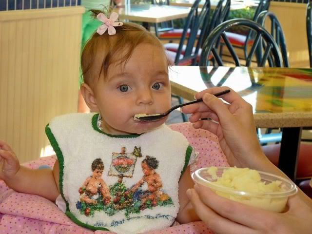 Then we went to eat at KFC. Macy had her first taste of mashed potatoes and boy did she like them