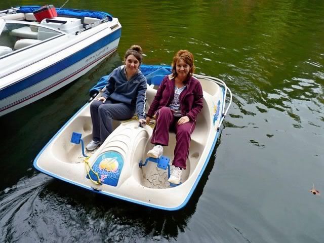 We played around outside in the kayaks and paddle boat.
