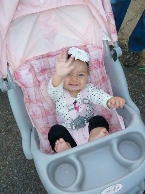 Macy has also started waving at people intentionally. Yesterday while we were out to eat, she was waving at the table next to us. It is too cute!