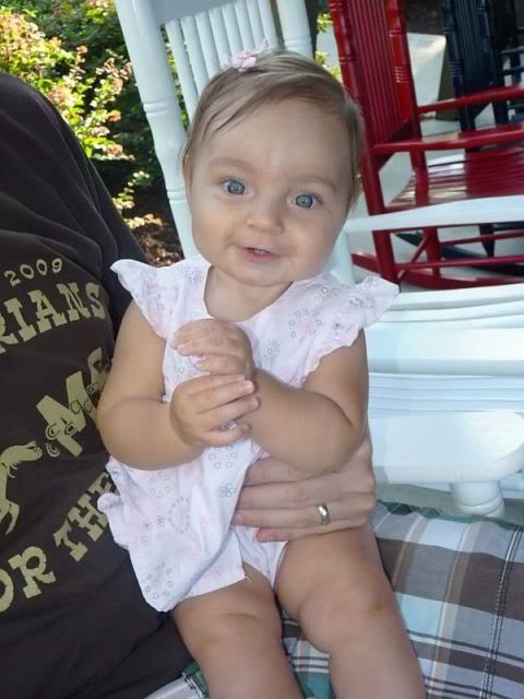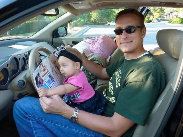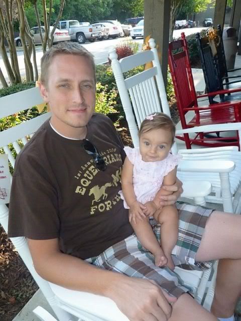 The next morning we went to Shannon's church. Clifton had to take Macy out because she was being too loud. They walked around and took pictures .